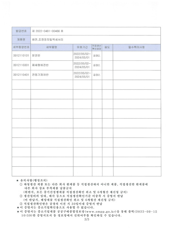 인증서 직접생산확인증명서_전기시스템