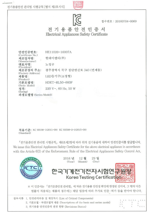 인증서 KC인증 고정형 50W
